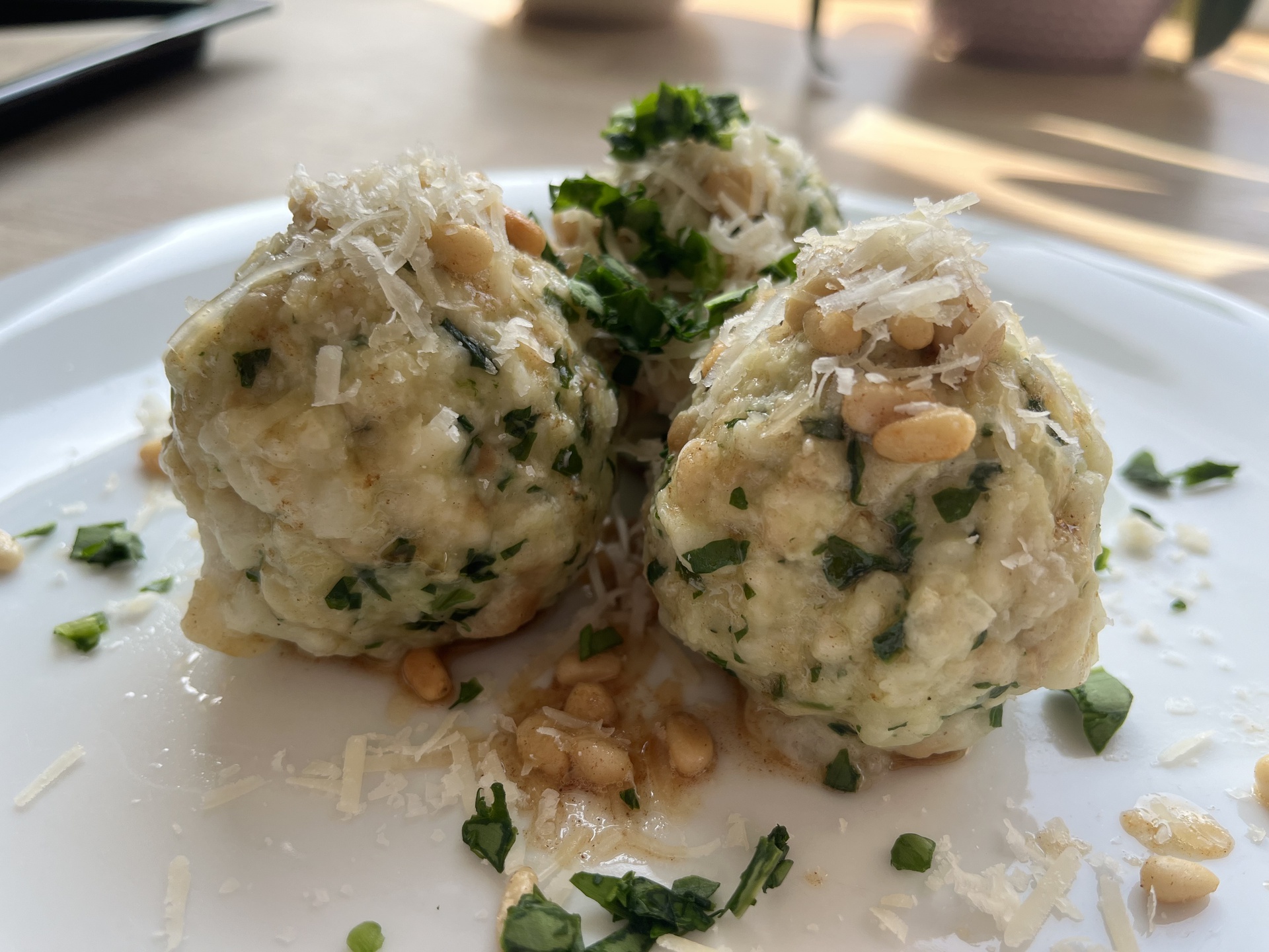 - Danach mit nassen Händen Knödel formen und im Salzwasser leicht wallend ca. 15 Minuten kochen lassen.