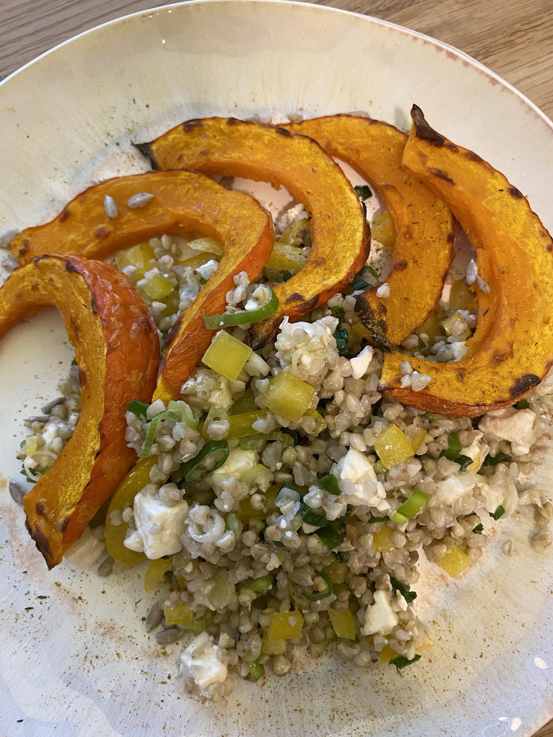 Diese bunte Mischung aus kernigem Buchweizen, würzigem Feta und aromatisch gebackenen Hokkaido-Spalten lässt die Herzen von Kürbisfans höher schlagen - egal ob als vollwertige Hauptspeise oder als Beilage genossen!