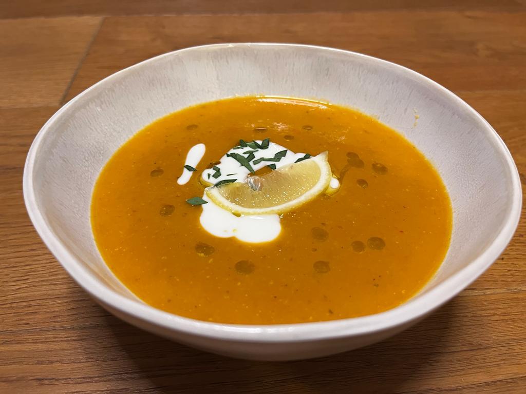 Zwiebel schälen und grob schneiden, Paprika und Karotte ebenfalls in grobe Stücke schneiden und alles in einem Topf im Olivenöl auf kleiner Stufe anrösten (soll nicht zu dunkel werden). Knoblauch und Ingwer schälen, ebenfalls hinzufügen und einige Minuten mitrösten. Wenn ein schönes Röstarmona entstanden ist, die Linsen und die Gewürze hinzufügen, kurz durchrühren und mit Wasser oder Gemüsebrühe aufgießen. Alles zum Kochen bringen und danach auf kleiner Flamme etwa 20-25 Minuten köcheln lassen, bis die Linsen und Karotten weich sind. Die Suppe pürieren, nochmal abschmecken und die Konsistenz bei Bedarf mit Wasser anpassen.